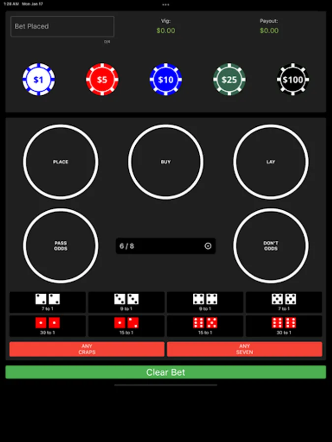 Whether you are a casino dealer, party dealer, or wanting to learn more about craps, Craps Calculator can help you practice the game with ease. A must have tool for any player or professional!