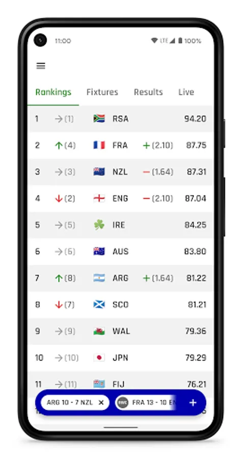 Rugby Ranker is an Android app for viewing and predicting the latest international rugby rankings 🏉