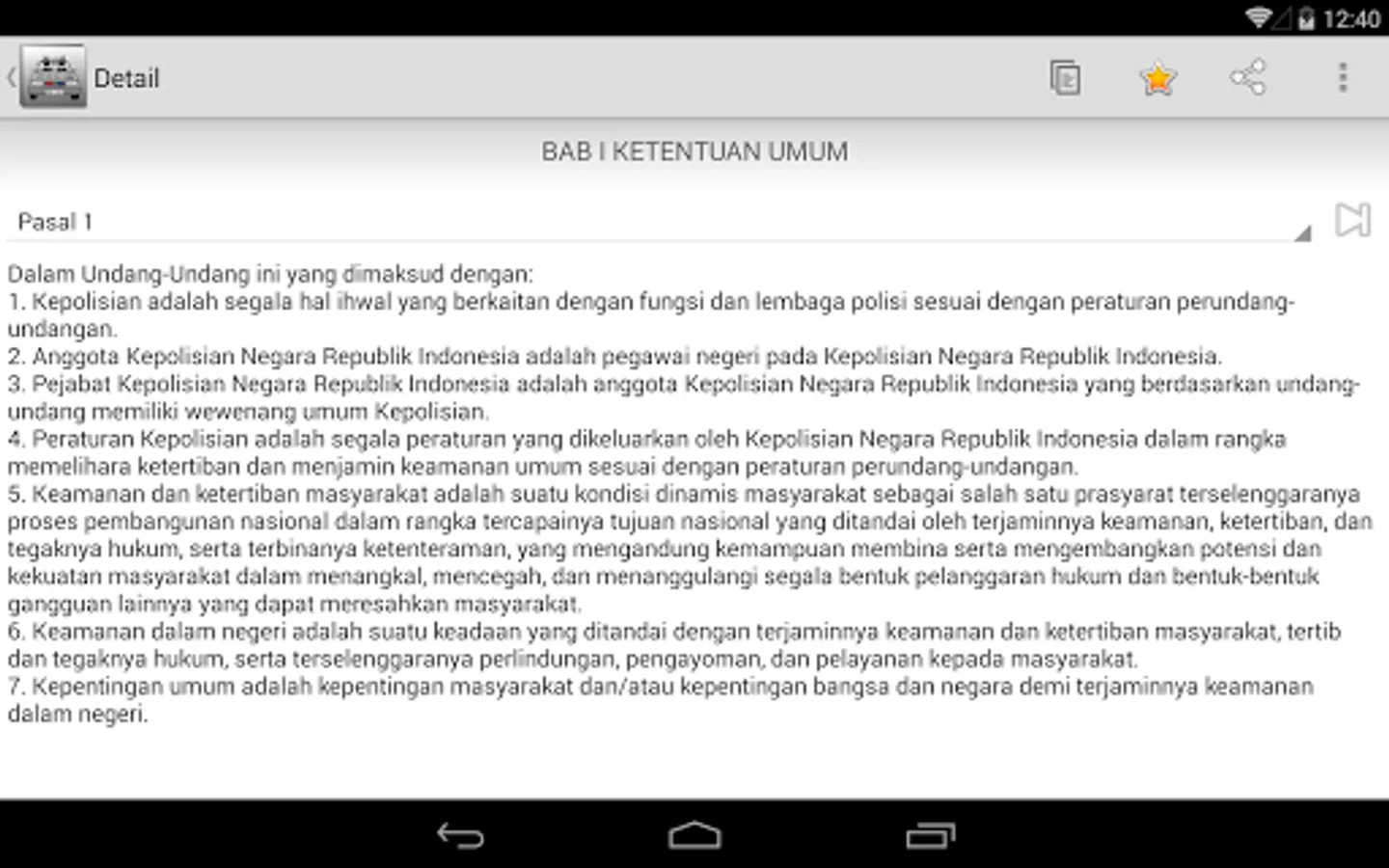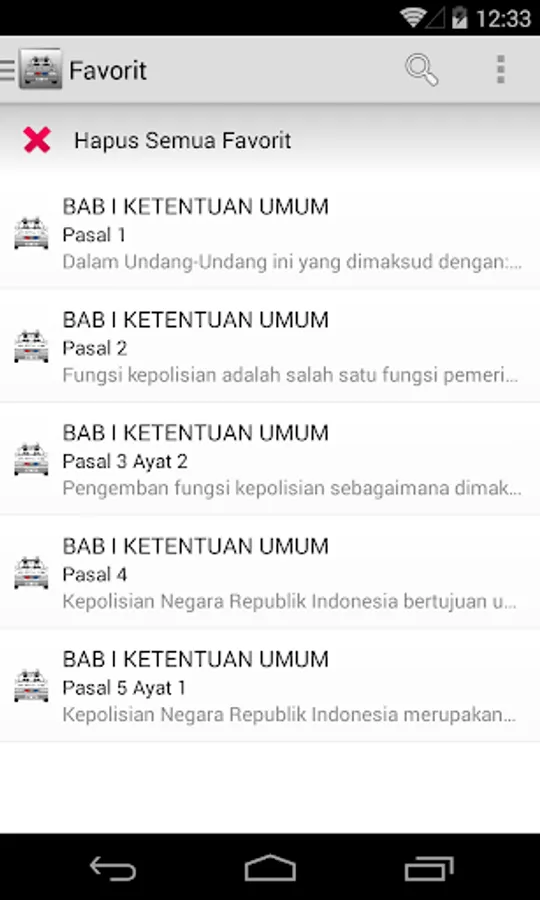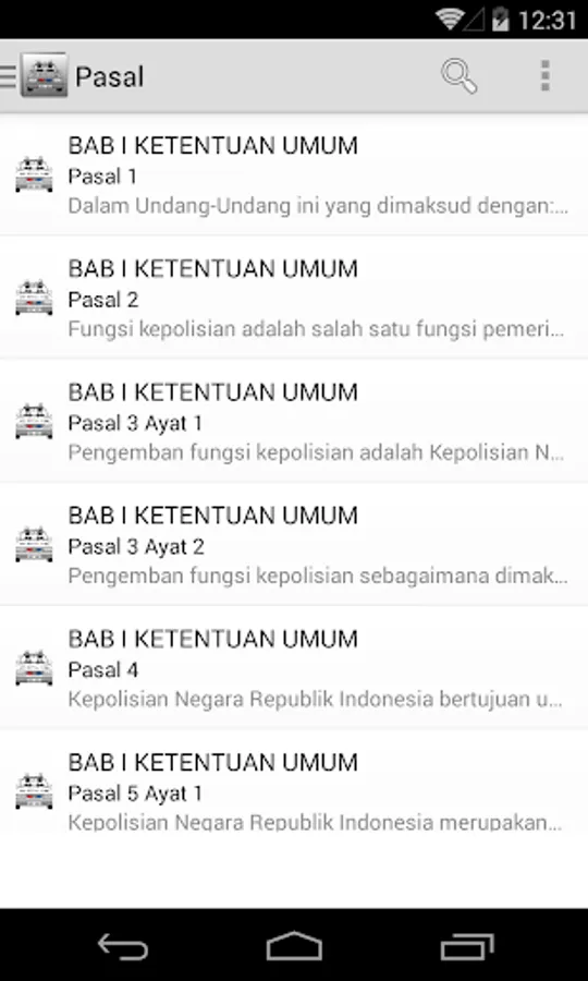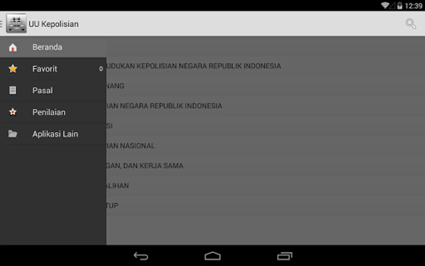 This application allows users to search for content LAW OF THE REPUBLIC OF INDONESIA NUMBER 2 OF 2002 ON POLICE OF THE REPUBLIC OF INDONESIA, the following features in the application: