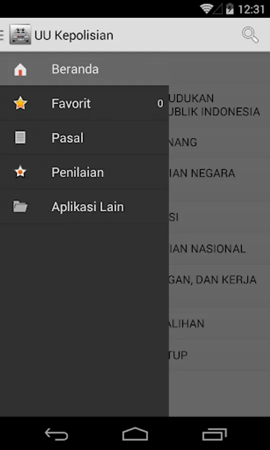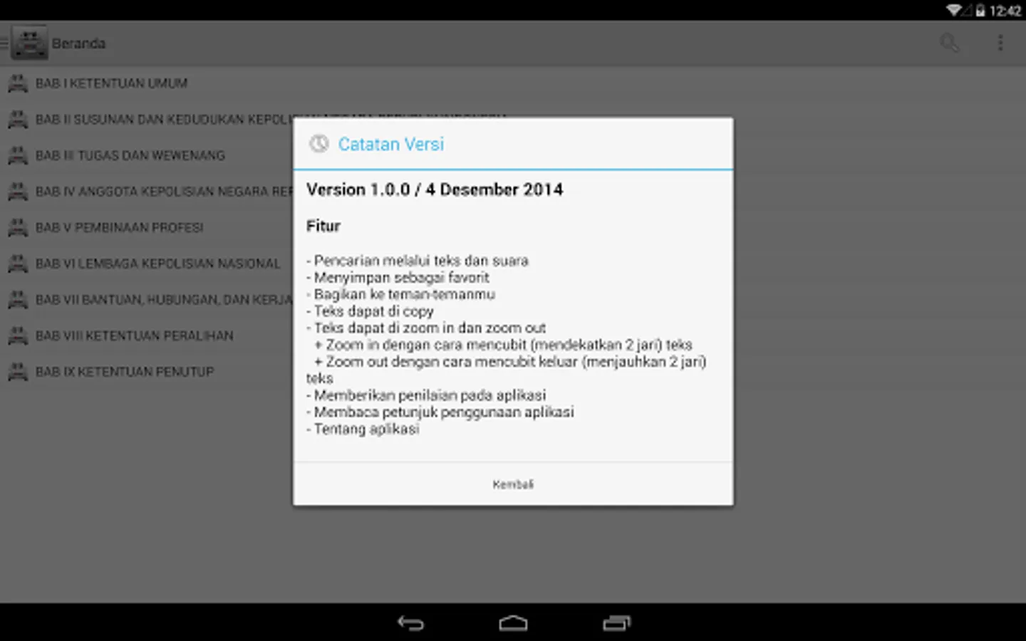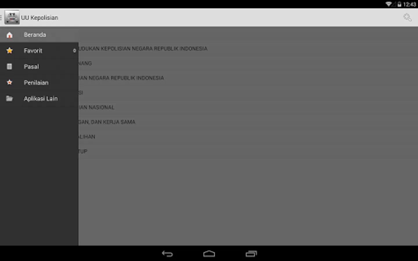 This application allows users to search for content LAW OF THE REPUBLIC OF INDONESIA NUMBER 2 OF 2002 ON POLICE OF THE REPUBLIC OF INDONESIA, the following features in the application: