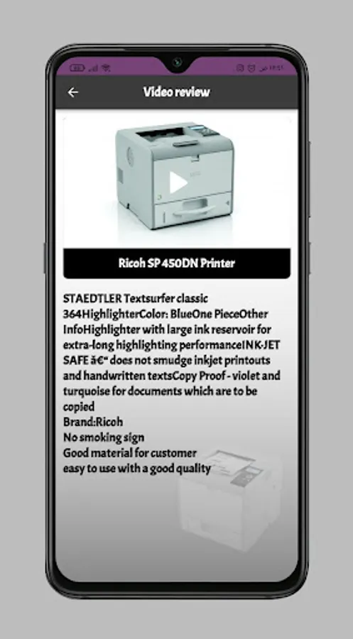 You can watch a video of the Ricoh SP 450DN Printer app, which allows a review of the look and feel of the Ricoh SP 450DN Printer app and its many different features including Feel the Drag - instantly connect your smartphone to a stabilizer