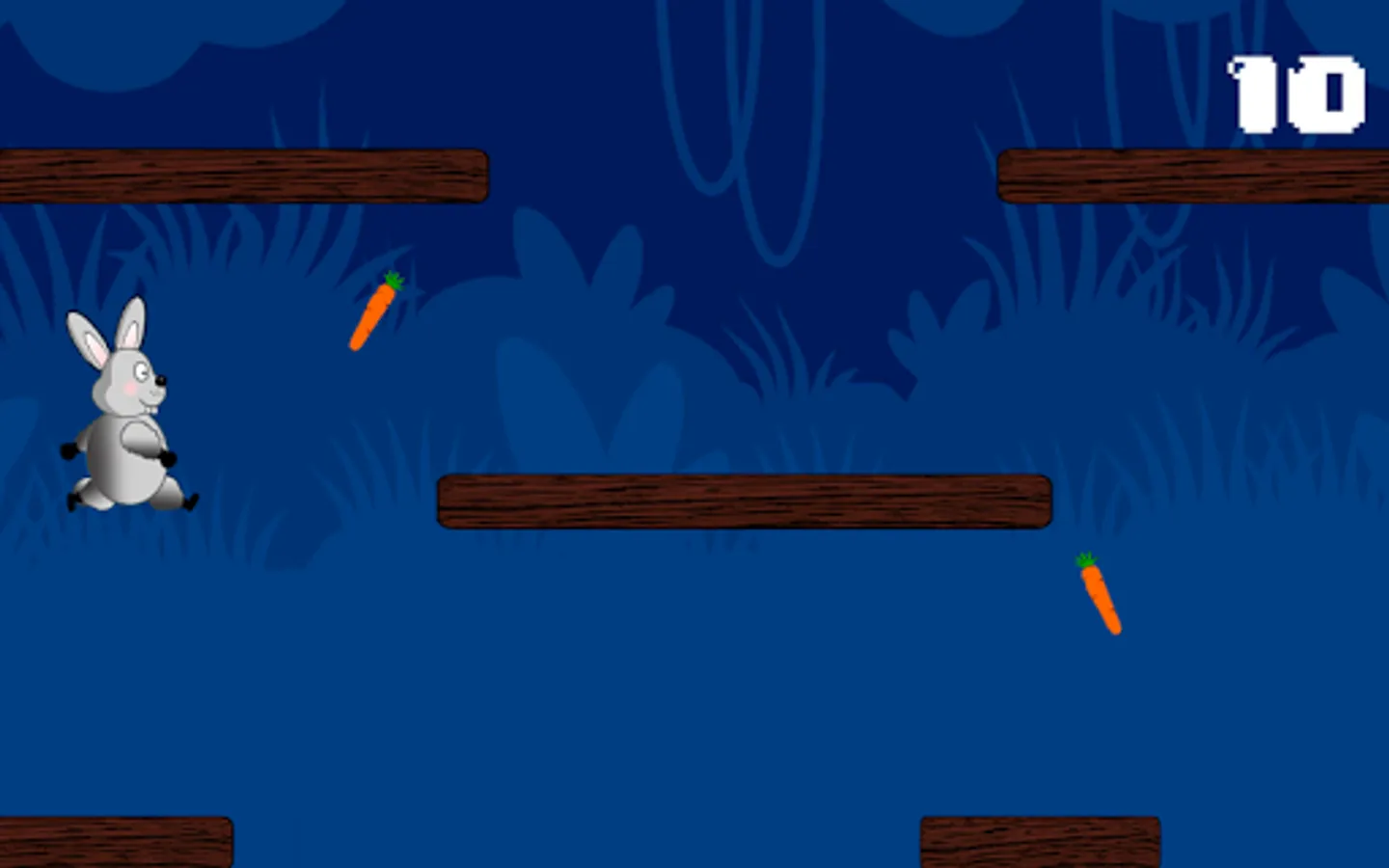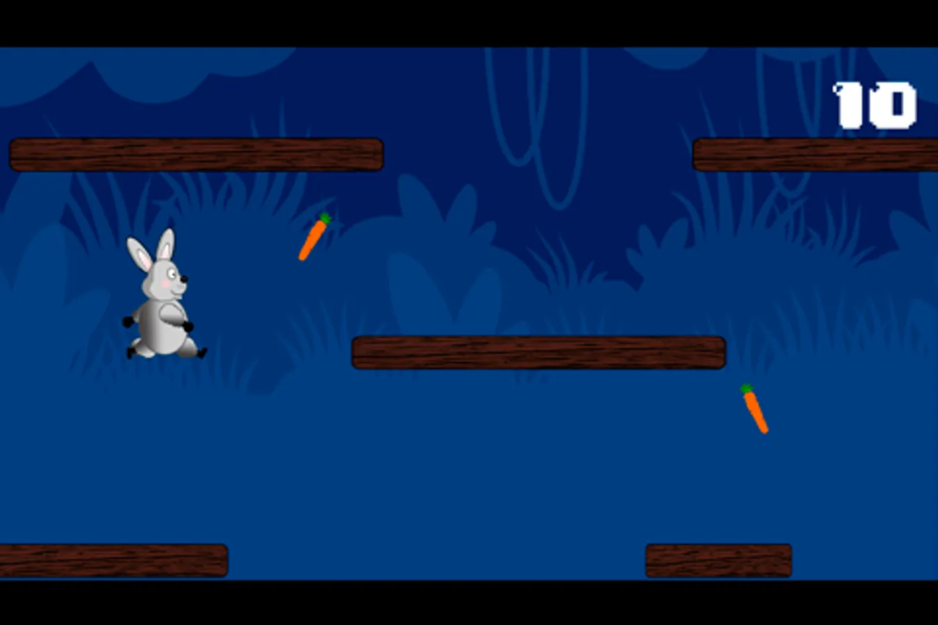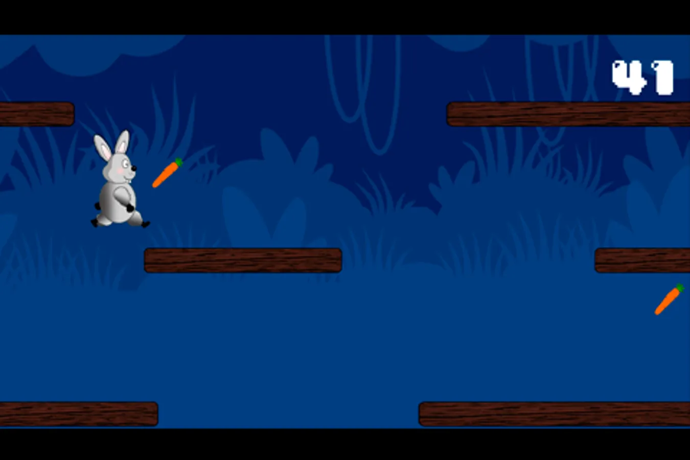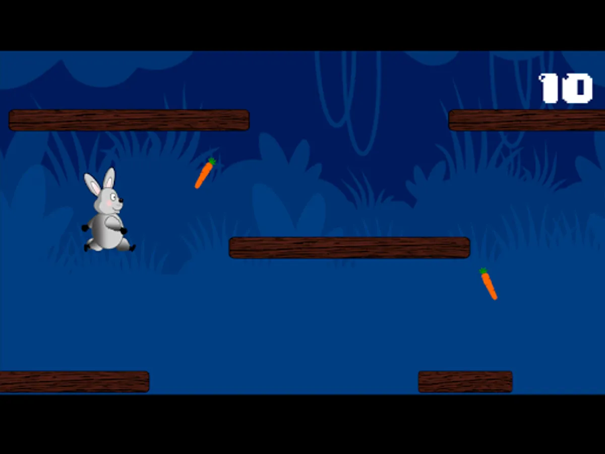 You're a funny rabbit who has to go through the jungle collecting food and holding as long as possible without falling.