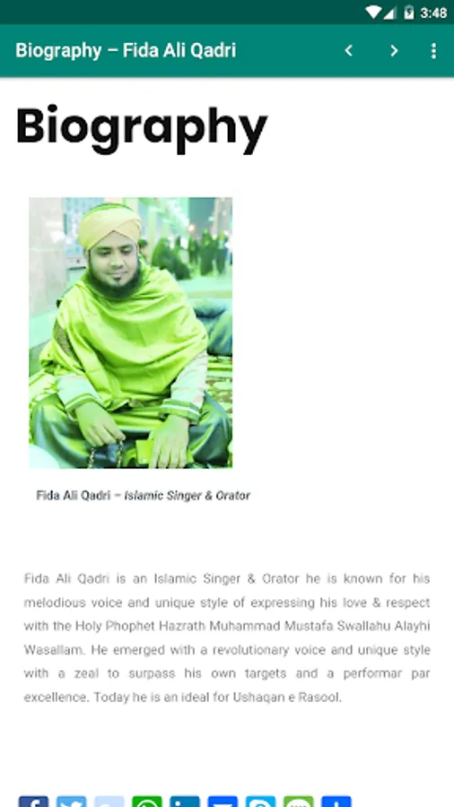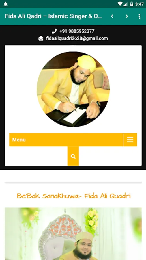Fida Ali Qadri is an Islamic Singer & Orator he is known for his melodious voice and unique style of expressing his love & respect with the Holy Prophet Hazrath Muhammad Mustafa Swallahu Alayhi Wasallam. He emerged with a revolutionary voice and unique style with a zeal to surpass his own targets and a performer par excellence. Today he is an ideal for Ushaqan e Rasool.