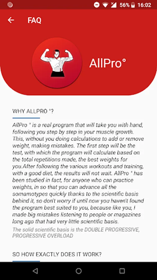 AllPro ° WeightLifting Workout Routine is an app with one of the best workouts that allows you to create a solid lean mass. Are you an ectomorph, an endomorph or a mesomorph? No problem, with the questions section, you can understand how to adapt the program.