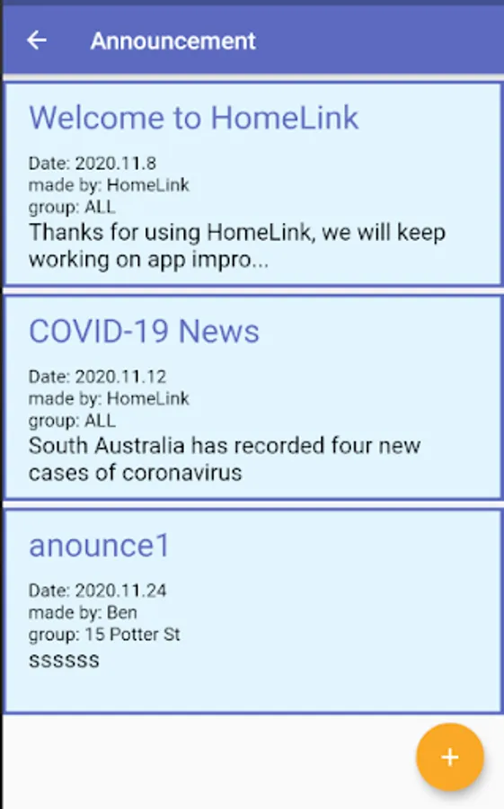 HomeLink is an app that contains communication, announcement, personal profile, calender, and group management.