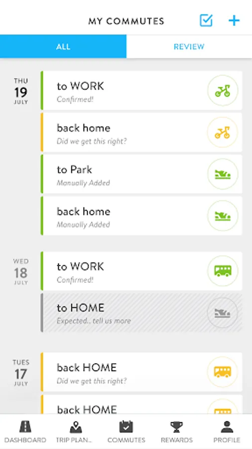 Confirm: Confirm or manage trips to keep your history up-to-date.