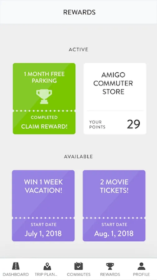 Earn: See the positive impact you’re making with your commute. Participate in challenges, earn commuter incentives, and redeem points for rewards and benefits like emergency rides home.