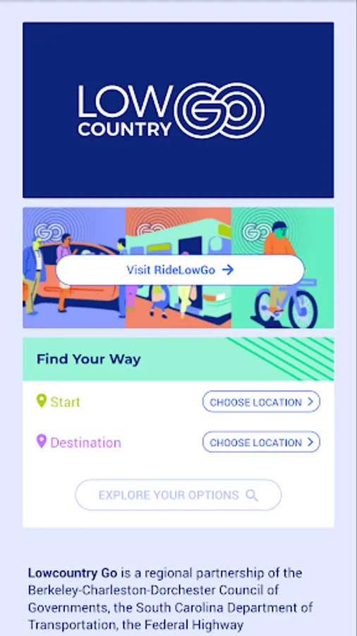 With the Lowcountry Go app, commuters can enter their daily commute locations and browse alternative modes of travel such as carpools, vanpools, transit, and biking and walking options. Lowcountry Go is simple and free to use – and, the app can connect you with other commuters in the region based on origin, destination, time, date or events.