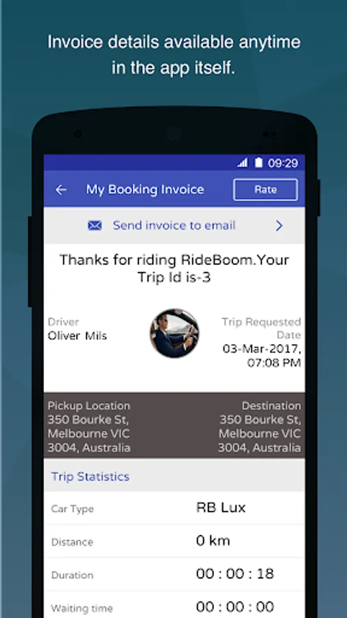 You can share your trip and driver details with your loved ones to give them a piece of mind so they know you are safe on your trip.