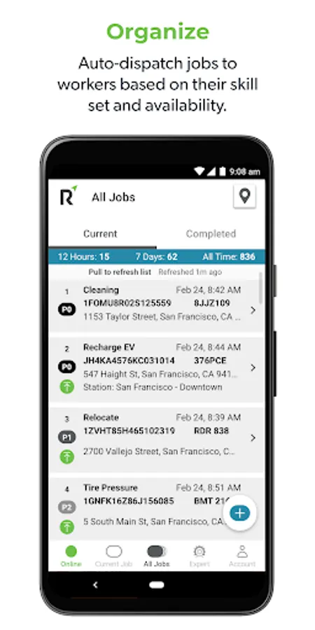 • Newly created urgent jobs are prioritized and dispatched accordingly.