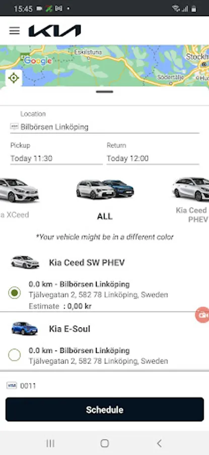 After downloading the app, registering your profile and having it verified, you can easily select a station on the map and book the time that suits you. You pay for the time you use, no more. If you have access to Kia Rent & Share via the service, you can easily switch between the profiles to choose business travel or private travel.