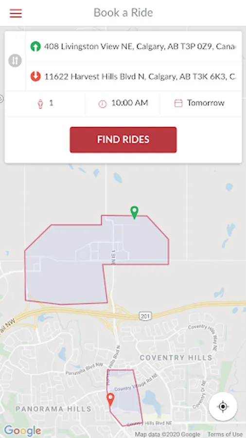 Use the app to select a time that you’d like a ride. Enter your pick-up location within the highlighted zones and the app will let you know when to expect your ride, and where to wait.