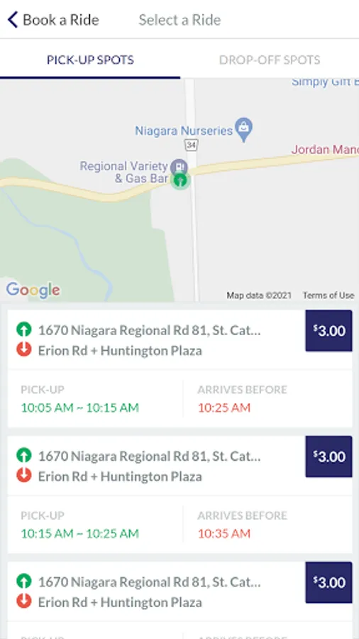 Regular St. Catharines Transit fares apply. Transfers are available upon request.