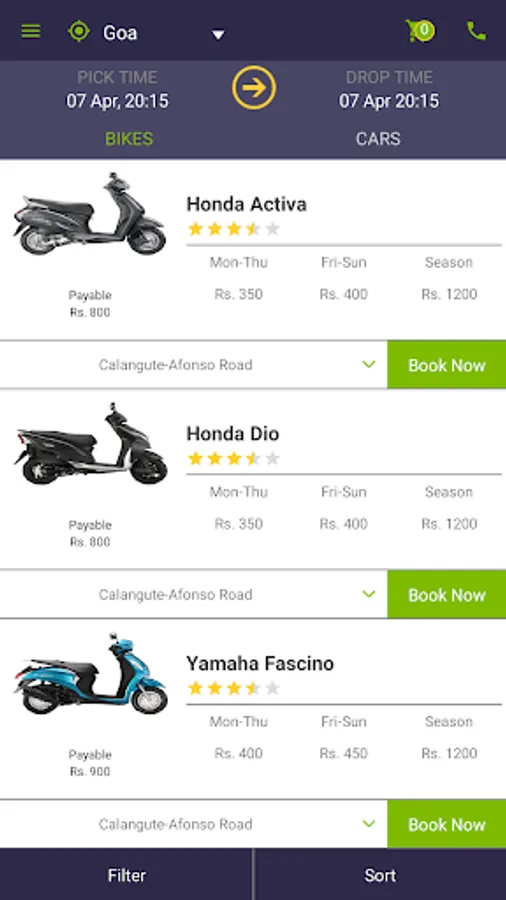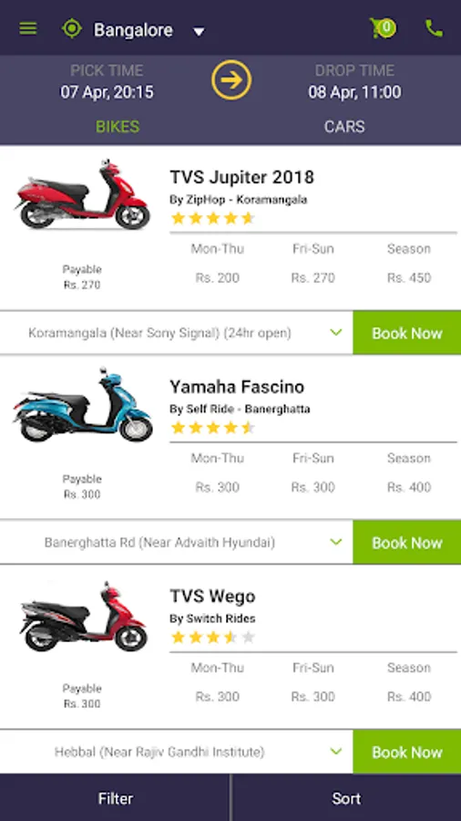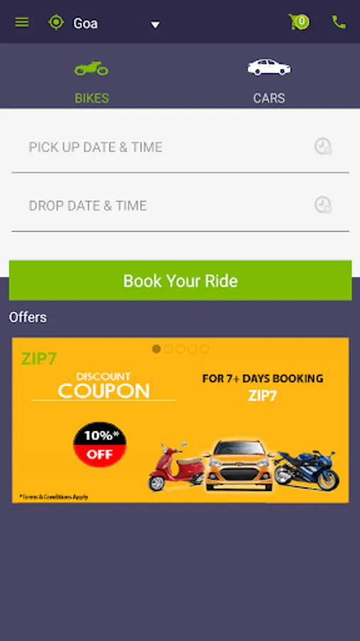 We provide bikes and cars including 2 wheelers such as scooter, enfields, harleys, jupitors, activas and 4 wheelers as Innova, i10, i20, Creta and many more variants for self drive and outstation purpose.