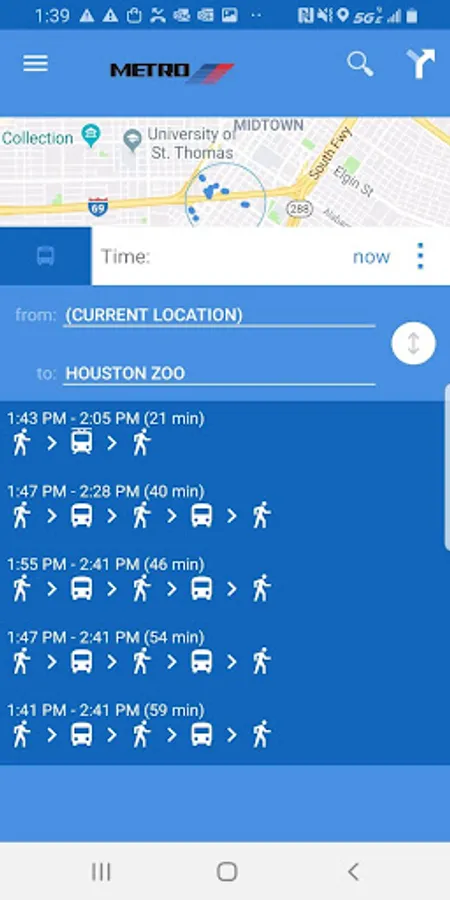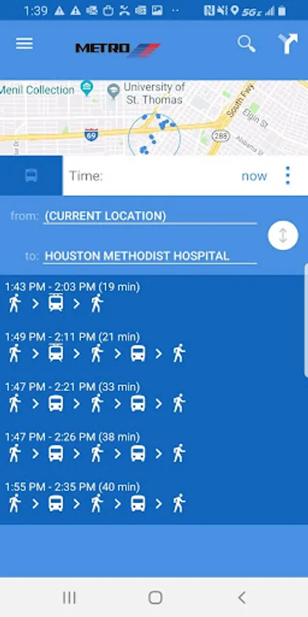 The app also allows you to plan your trip so you can get step by step directions for how to go (using local bus or METRORail), how long it’s expected to take, and a link to the METRO Q Ticketing app where you can purchase a ticket to ride with a credit card, PayPal, Google Pay or Apple Pay.