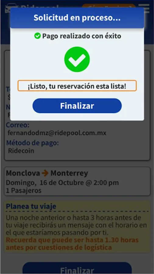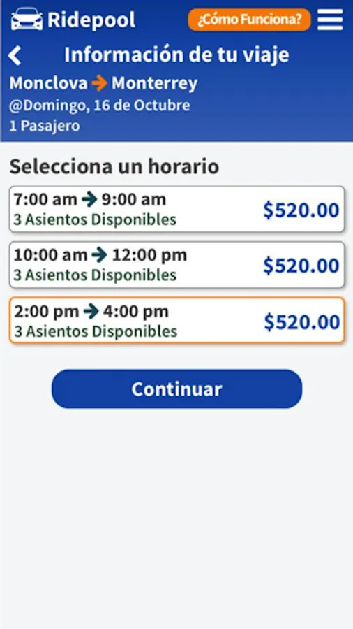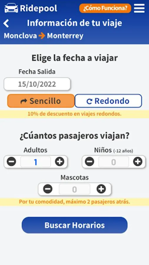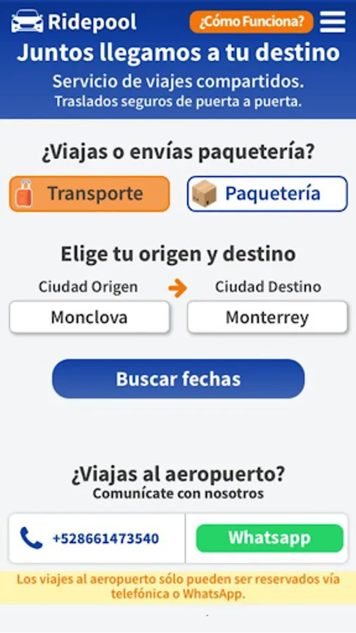 Shared ride service in door-to-door mode between cities in northern Mexico.