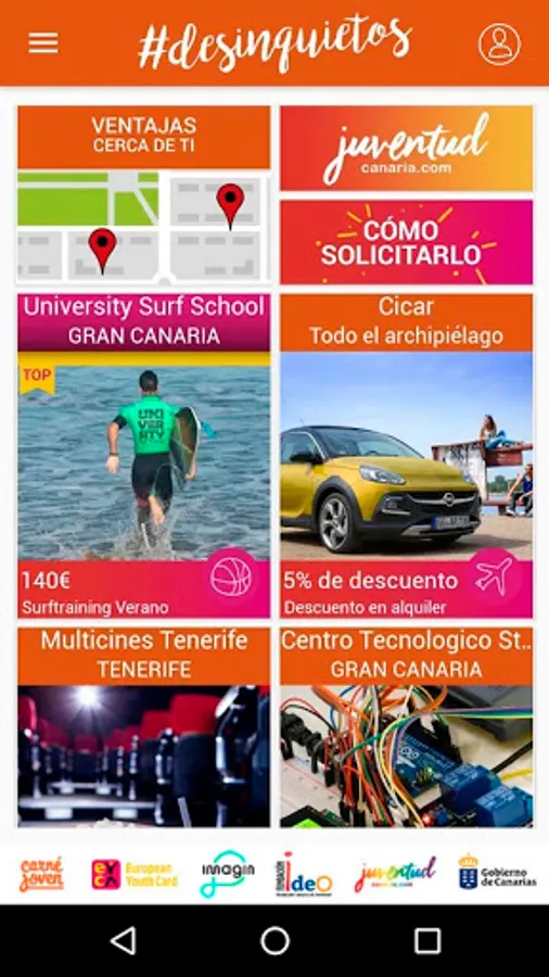 Initiative of the Department of Youth of the Canary Islands Government, attached to the European Youth Card Association (EYCA) program. You offer exclusive benefits and discounts -within and outside the islands - young residents in the Canary Islands, between 14 and 30 years Are you one of them? Solicitame!