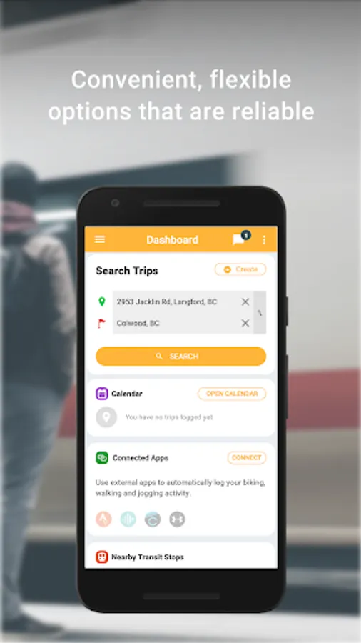 Create your account, enter the addresses you commute between and find carpools, bus routes, cycle routes, and walking routes that match your commute. With GOCO you can also search for nearby like-minded commuting partners whether you drive, use public transit, cycle, or walk.