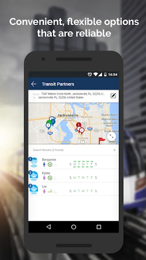 The North Florida TPOCooltoPool platform is a trip planning and commuter-matching service that provides a one-stop-shop trip planning tool for improving your commute, whether you carpool, walk, bike, or take transit. Through TPOCooltoPool’s easy-to-use interface and mobile app, you can search for all available transportation options for your commute by simply entering an origin and destination.