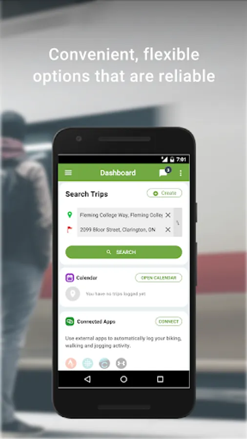 Fleming Rideshare is a quick, secure, and personal way to find all your commuting options. Using your home and work addresses, you can find a carpool, transit, cycling or walking pool that matches your commute. You can search for nearby commuters looking for carpool, biking, or walking partners. This Rideshare app is a powerful and convenient way to track all of your commuting activity.
