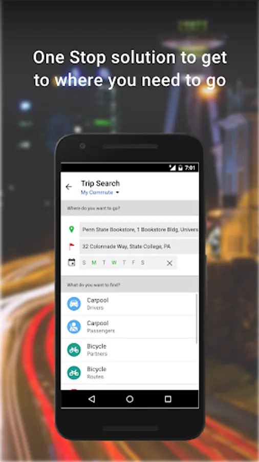 Users can find ride matches for daily carpooling and one-time trips based on their destination and schedule. Find your way using carpool, public transportation, and biking options that are conveniently located on one platform to help plan your journey. Home addresses will never be shared on any match list, and you can choose who and when you contact a potential match.