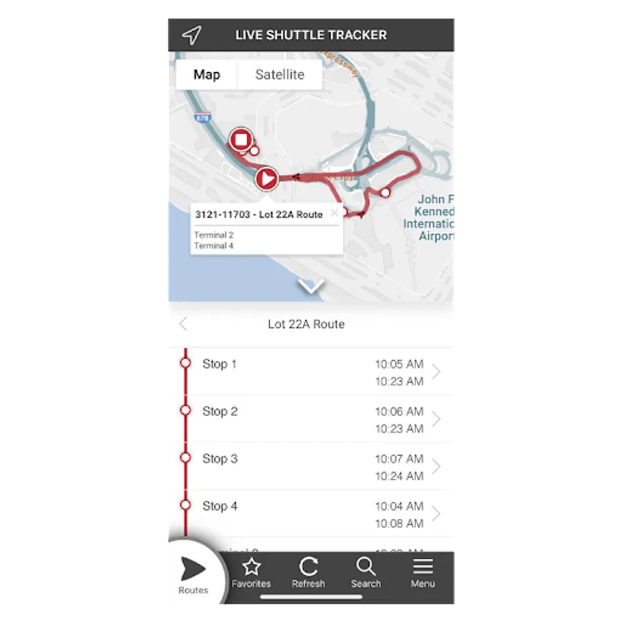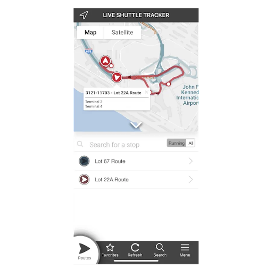 This application tracks the employee shuttle at the JFK, Atlanta, and MSP Airports.