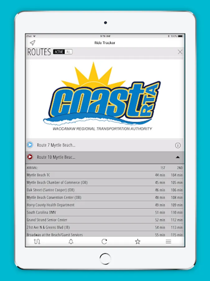 Shuttle Tracking application for Coast RTA. This app includes live shuttle bus information with stop ETAs and route information.