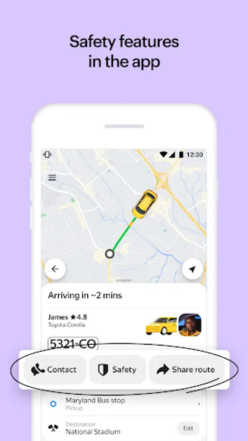 Let your loved ones know about your ride with the route-sharing feature. Stay in touch with the 24/7 support chat just in case.