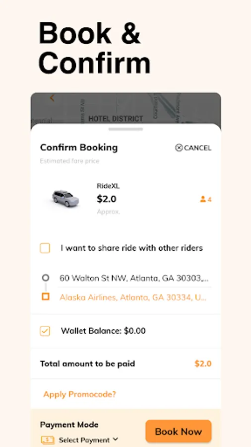 Effortlessly pay for rides within the app, eliminating the need for cash and ensuring