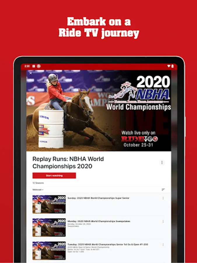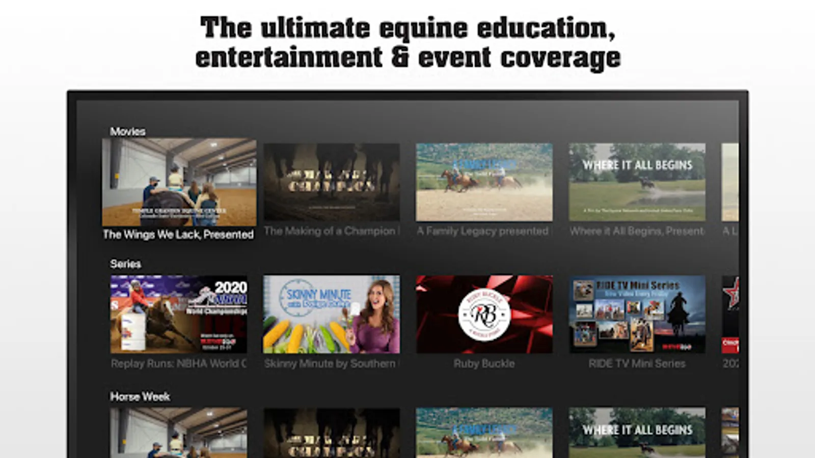 Embark on a Ride TV journey and discover the world of horses like never before! From mini ponies to training with top pros, Ride TV brings the ultimate equine education, entertainment and event coverage content to one platform. Now featuring video from Horse&Rider OnDemand and BarrelRacing.com!