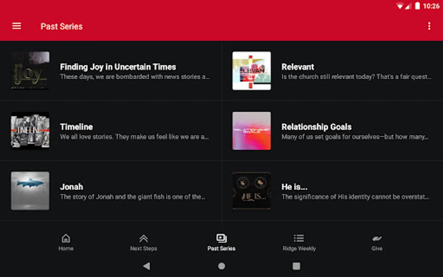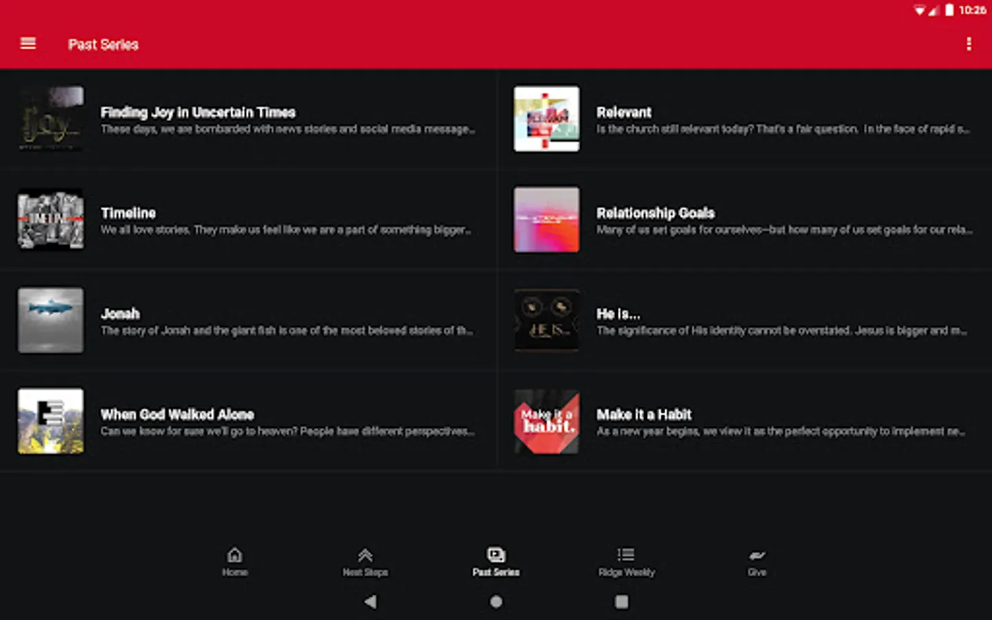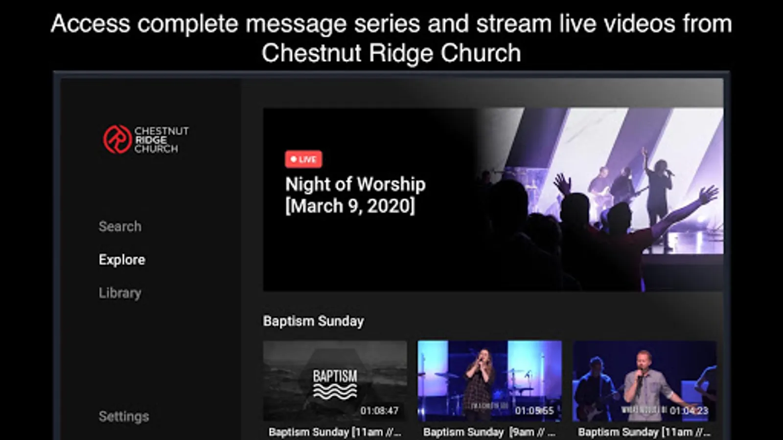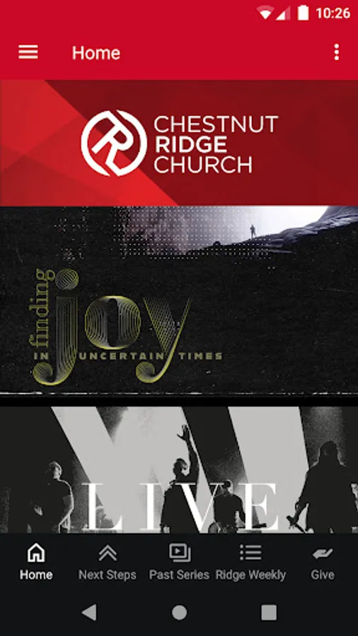 The Ridge Live app provides easy, on-demand access to videos, message series and livestreaming content from Chestnut Ridge Church in Morgantown, WV. Find resources, support, prayer, connection and more — it's the easiest way to stay up-to-date with what's happening around The Ridge.