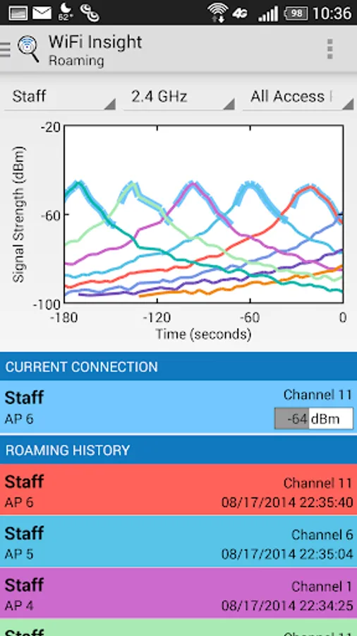 • Analyze channel utilization, signal strength and WiFi coverage with easy to use charts and graphs