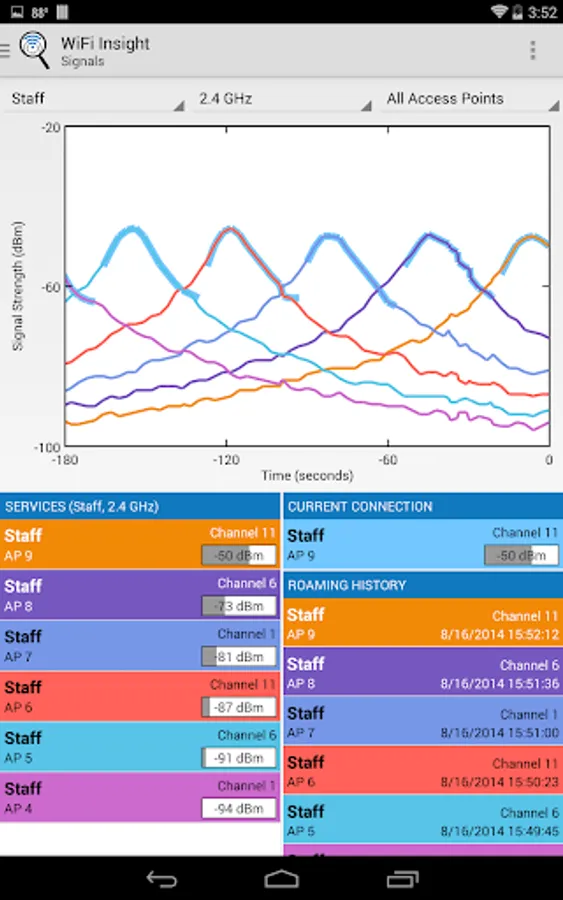 WiFi Insight can analyze and monitor WLAN networks and access points from all vendors including Cisco, Aruba, Aerohive, Ruckus, Ericsson, Linksys, Netgear, Arris, Apple, Motorola, Tropos, Juniper, Avaya, D-Link, TP-Link and HP. WiFi Insight also works with access point features built into cable and DSL modems to analyze wireless aspects of Comcast Xfinity, AT&T U-Verse, Google Fiber and Cox high speed Internet services. WiFi Insight is an excellent tool if you are trying to troubleshoot or optimize your Chromecast or Fire TV connection.