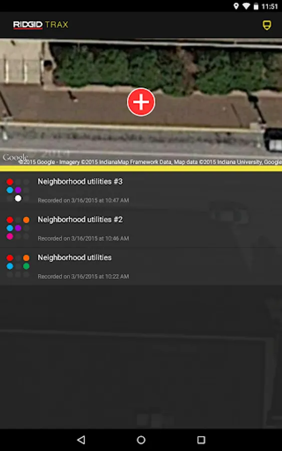 RIDGID Trax enables basic underground utility mapping in real time. Connect an Android device wirelessly with Bluetooth to a RIDGID SR-24 Utility Locator and RIDGID Trax will display GPS position and depth of the target utility. A user can identify the type of utility (water, gas, electric, etc.) and display multiple utilities on the same map. A finished map can be saved and viewed inside the app or exported to a *.KML file for use with popular GIS programs.