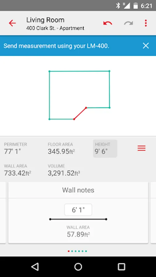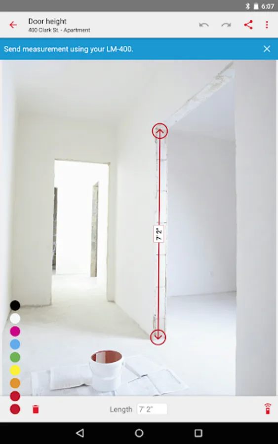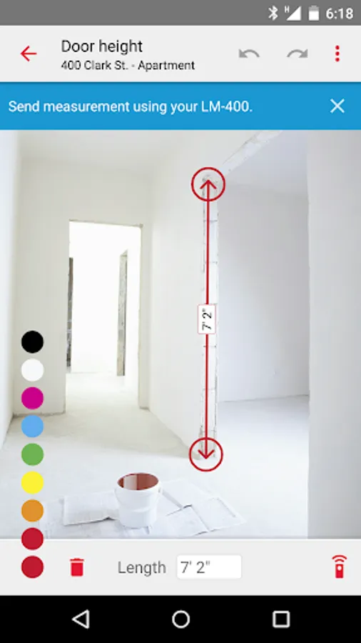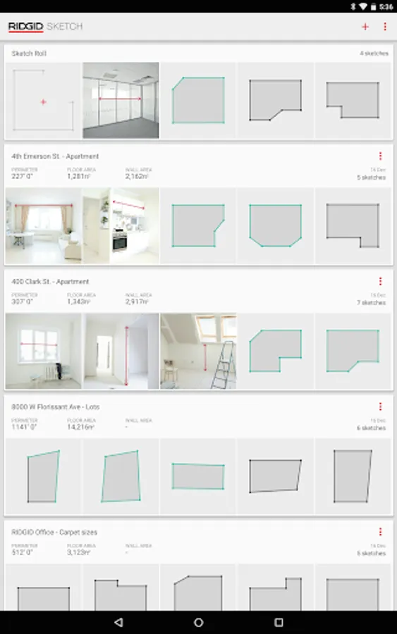 RIDGID Sketch is a handy tool that allows you to calculate and communicate various measurements on your projects. It can be used on its own or in conjunction with a RIDGID LM-400 Laser Distance Meter. The app will connect to your LM-400 via Bluetooth and receive precise distance measurements from the device. RIDGID Sketch works in both drawing mode and photo overlay mode allowing you to develop precise room plans or annotate measurements within a picture.