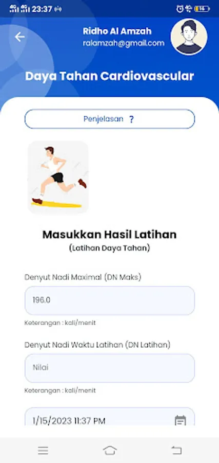 Sports application to measure a person's fitness level within a certain age range. This application is made in order to improve one's fitness in carrying out daily activities and also to increase knowledge about body fitness.
