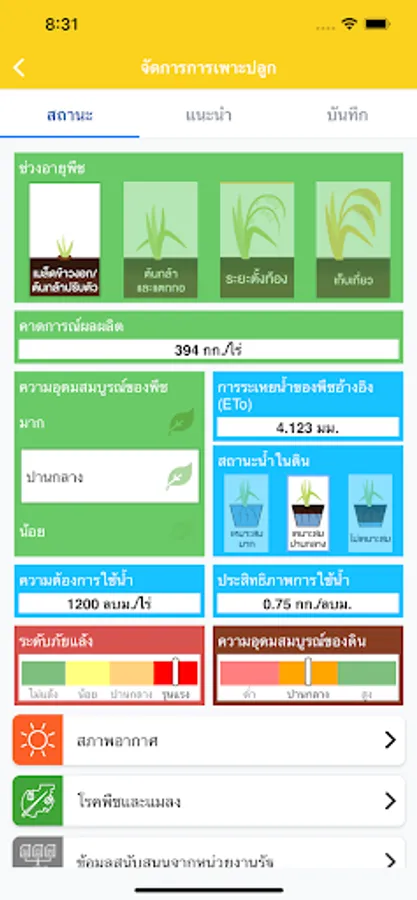 RID Meesuk is an intelligent irrigation and farming management system (Smart Irrigation and Farming) with IoT and Remote Sensing technology, whose important function is to recommend cultivation information. the right amount of water forecast yield and record the activity in the plot thus making farmers aware Proper use of water and can adapt to the situation of cultivation