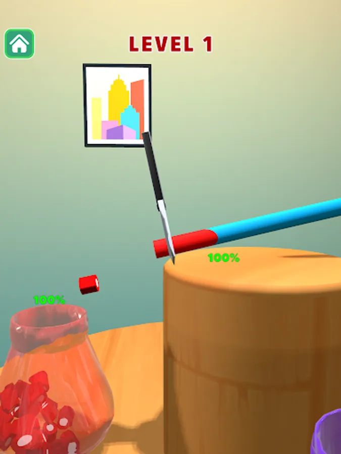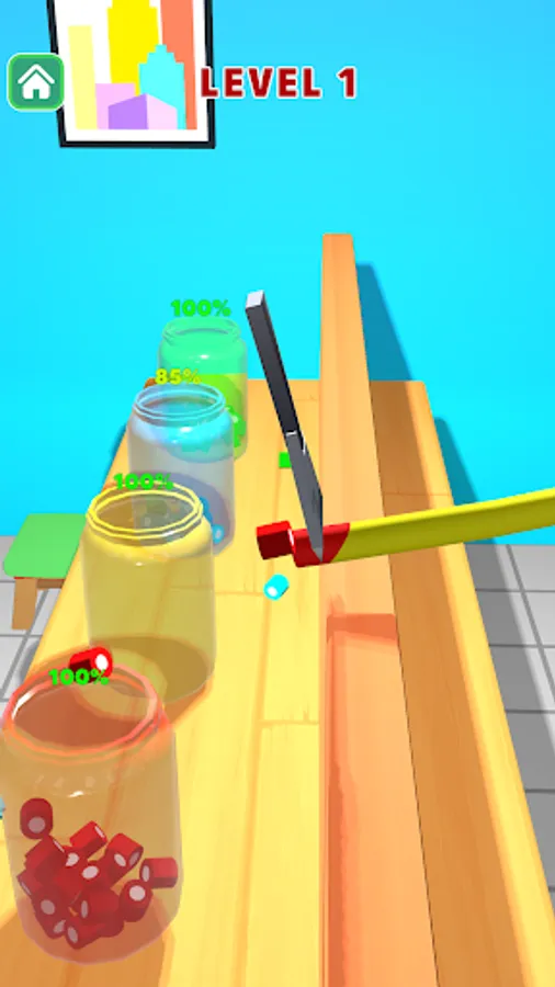 Unique levels to do satisfying chopping of jelly stick into respective coloured containers.