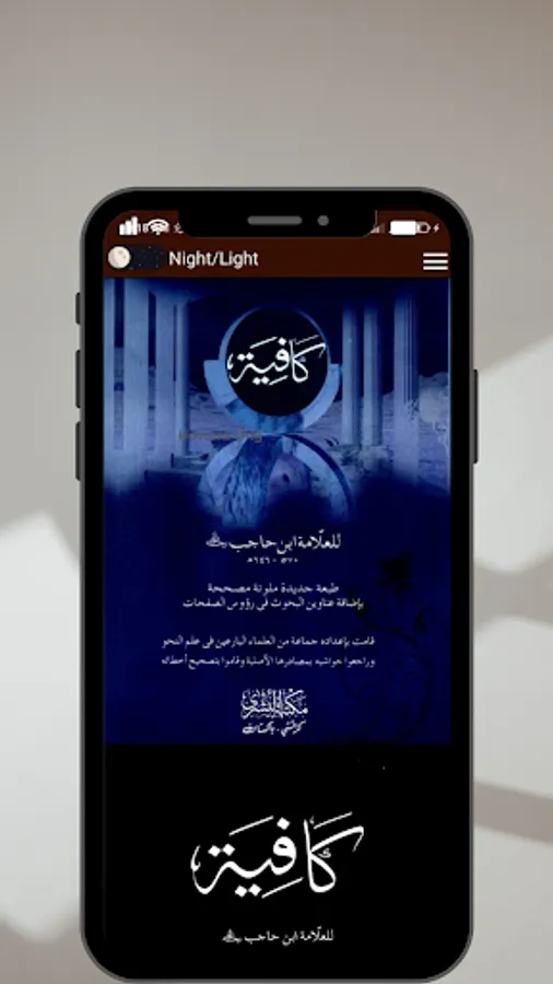 اس ایپ میں کافیہ کی مکمل کتاب ہے اور اس کے ساتھ کافیہ کی شرح اردو ہے جس کا نام کشف المطالب ہے