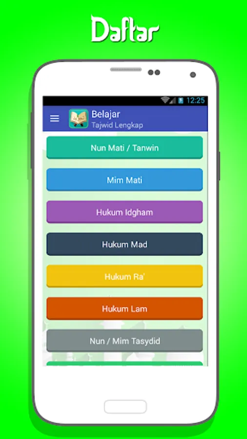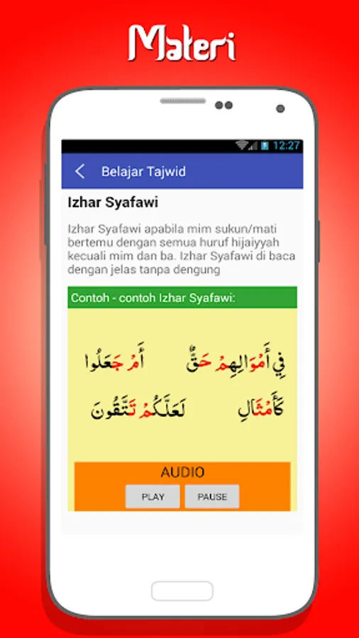 This application Presenting Materials Science Tajwid complete with examples of her in the Qur'an and equipped with Audio how to read.