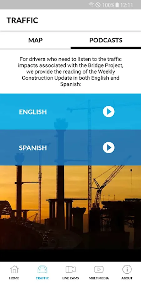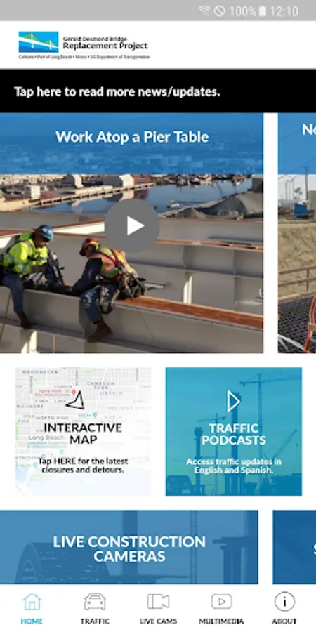 The Gerald Desmond Bridge Replacement Project is creating a new, iconic bridge in the City of Long Beach, and we want you to stay connected! Through our free mobile app, you can get live traffic and detour maps, text alerts, weekly English and Spanish audio reports, photos, videos, access to tour sign-ups and live webcams, and more.