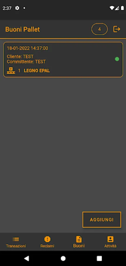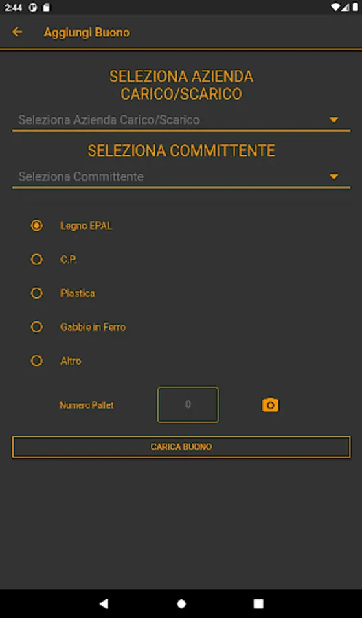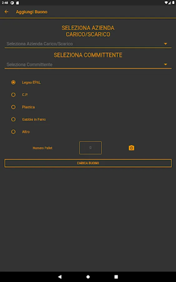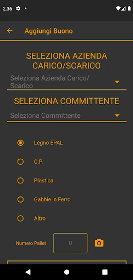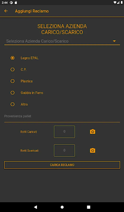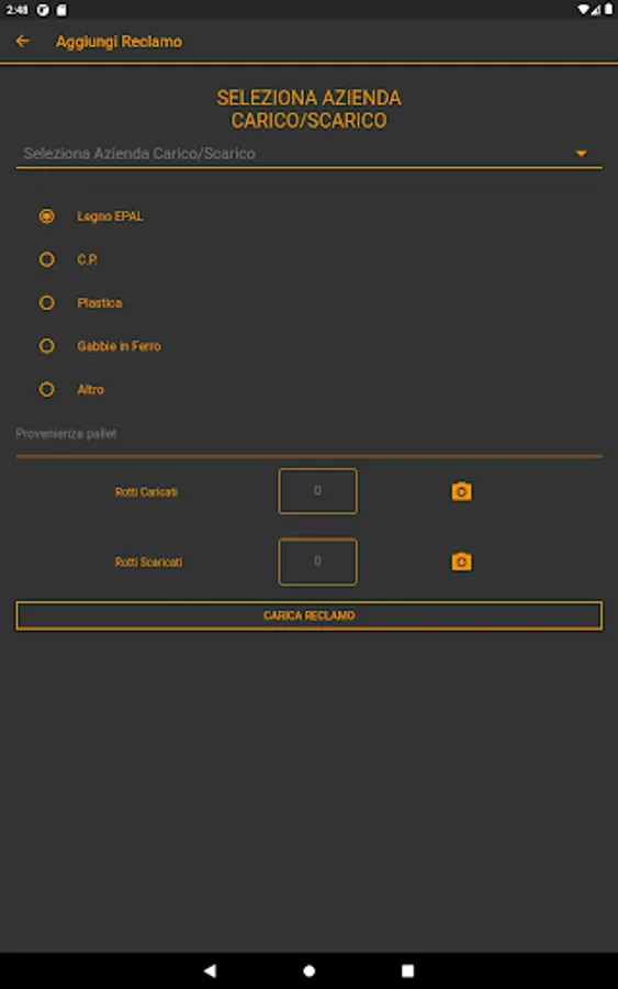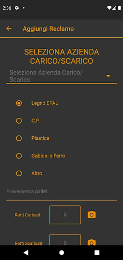 - For DISPUTES the driver clicks on the ADD button, selects THE CUSTOMER, selects the TYPE of pallet, writes the NUMBER and takes a PHOTO and clicks on UPLOAD DISPUTES.