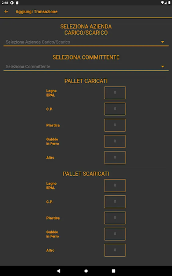 - Using the ADD key select the CUSTOMER, fill in the number of LOADED and UNLOADED PALLETS, write the NAME of the Warehouse Manager and have it SIGNED (optional);