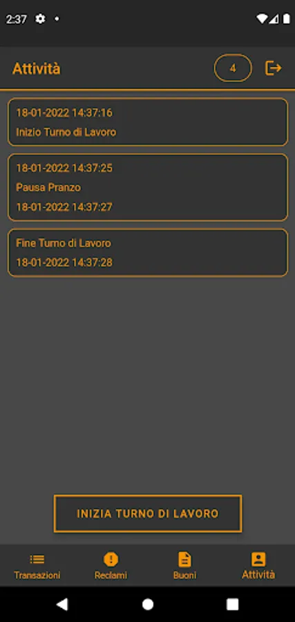 - The list of transactions appears immediately (which starts from ZERO every morning);