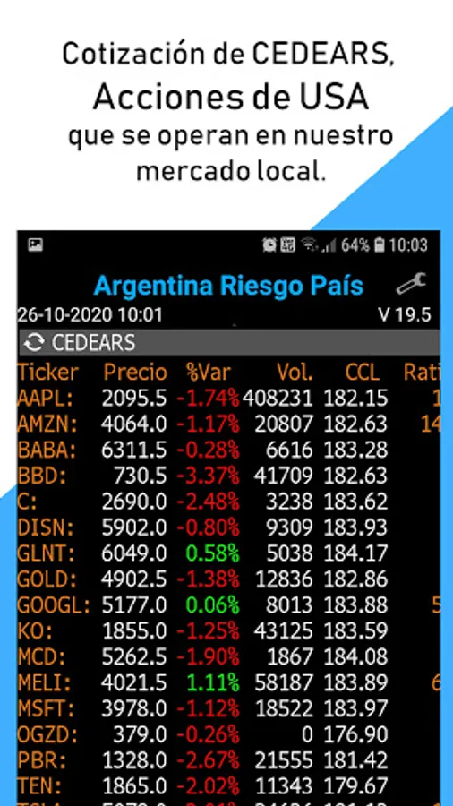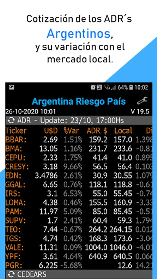 - Quote of Argentine ADR vs. local shares.