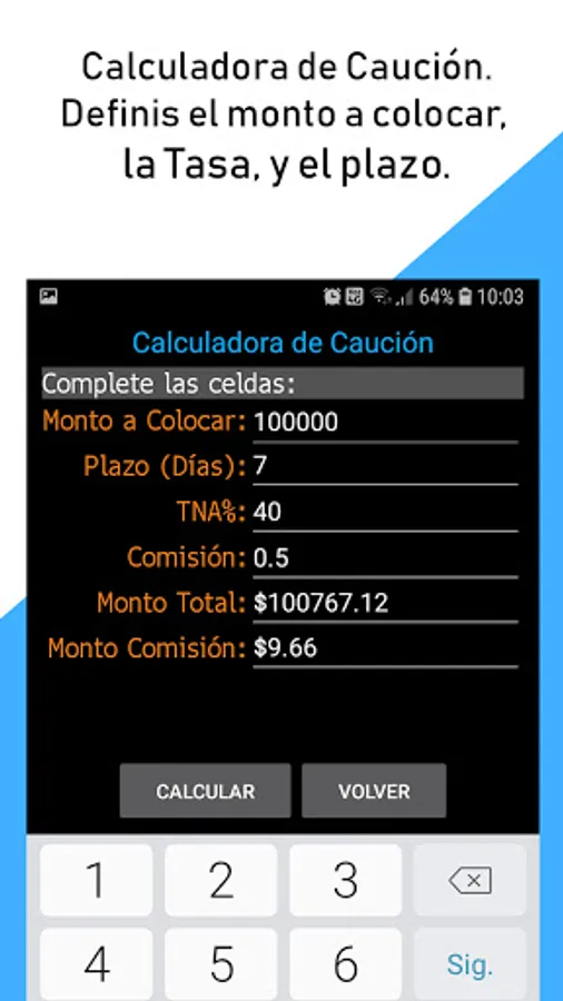 - Value of the CER index, BADLAR rate, Fixed Term Rate, Surety.