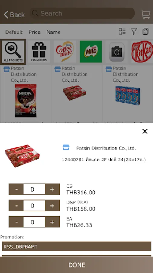 * Full visibility of Product list, Prices, Promotions and Order Status