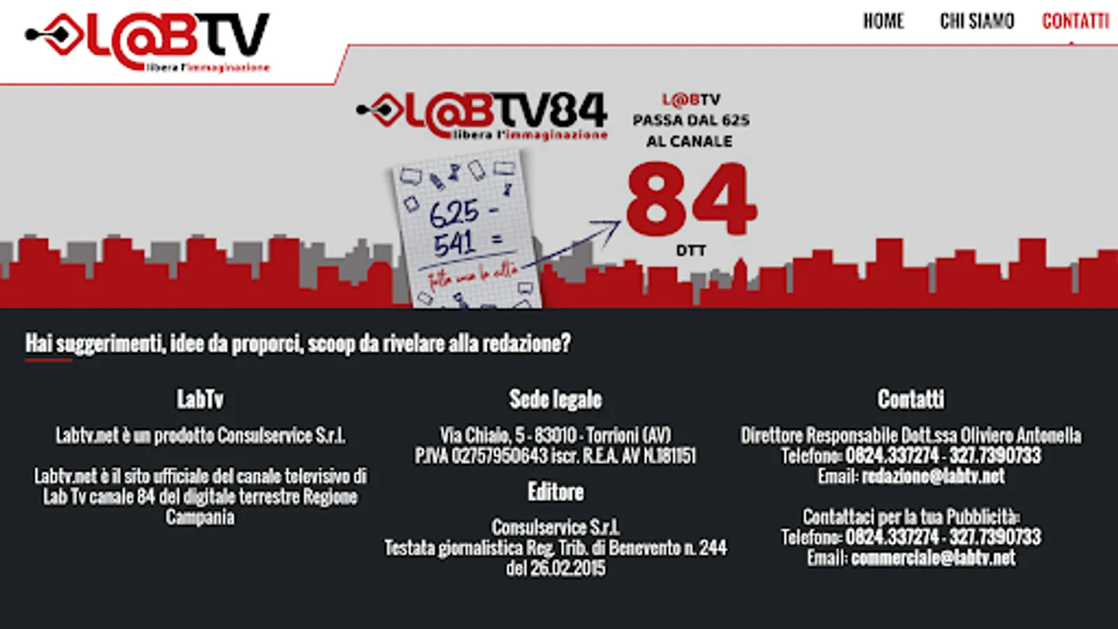 LabTV is a broadcaster of the Campania Region visible on digital terrestrial channel 84 and in streaming on the website www.labtv.net.