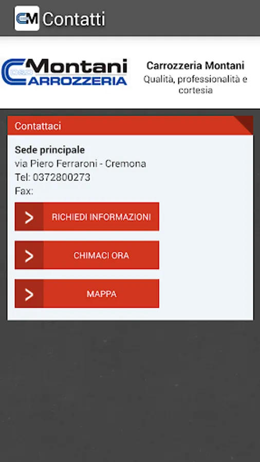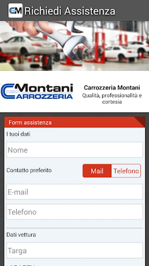 This is the official app of the bodywork Montani of Cremona. With this App you can be in direct contact with our body receive notifications of promotions, news, request a quote for the actions of your car, have control of all our contact details in case of emergency.