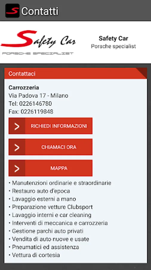 This app is the official Safety Car in Milan. With this App you will be in direct contact with our paint factory to receive notifications of promotions, news, request a quote for the actions of your car, have control of all our contact details in case of emergency.